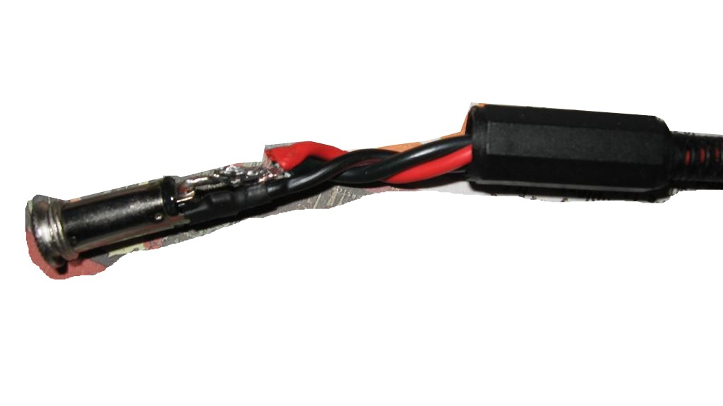 Man verlötet nun die Klinkenstecker bzw. -Kupplung. Danach wird an einem kleinen Abschnitt ein Stück vom "originalen" Lichterkettenkabel herausgeschnitten, ein passender Schrumpfschlauch mit richtiger Länge auf das Kabel geschoben und anstelle des herausgeschnittenen Kabels der Widerstand eingelötet. Hierbei sollte man darauf achten, die Beinchen des Widerstandes nicht zu lang zu lassen, da das Kabel an der Stelle nicht so flexibel ist und die Beinchen des Widerstandes möglichst nicht zu oft herumgebogen werden, da sie sonst brechen könnten.