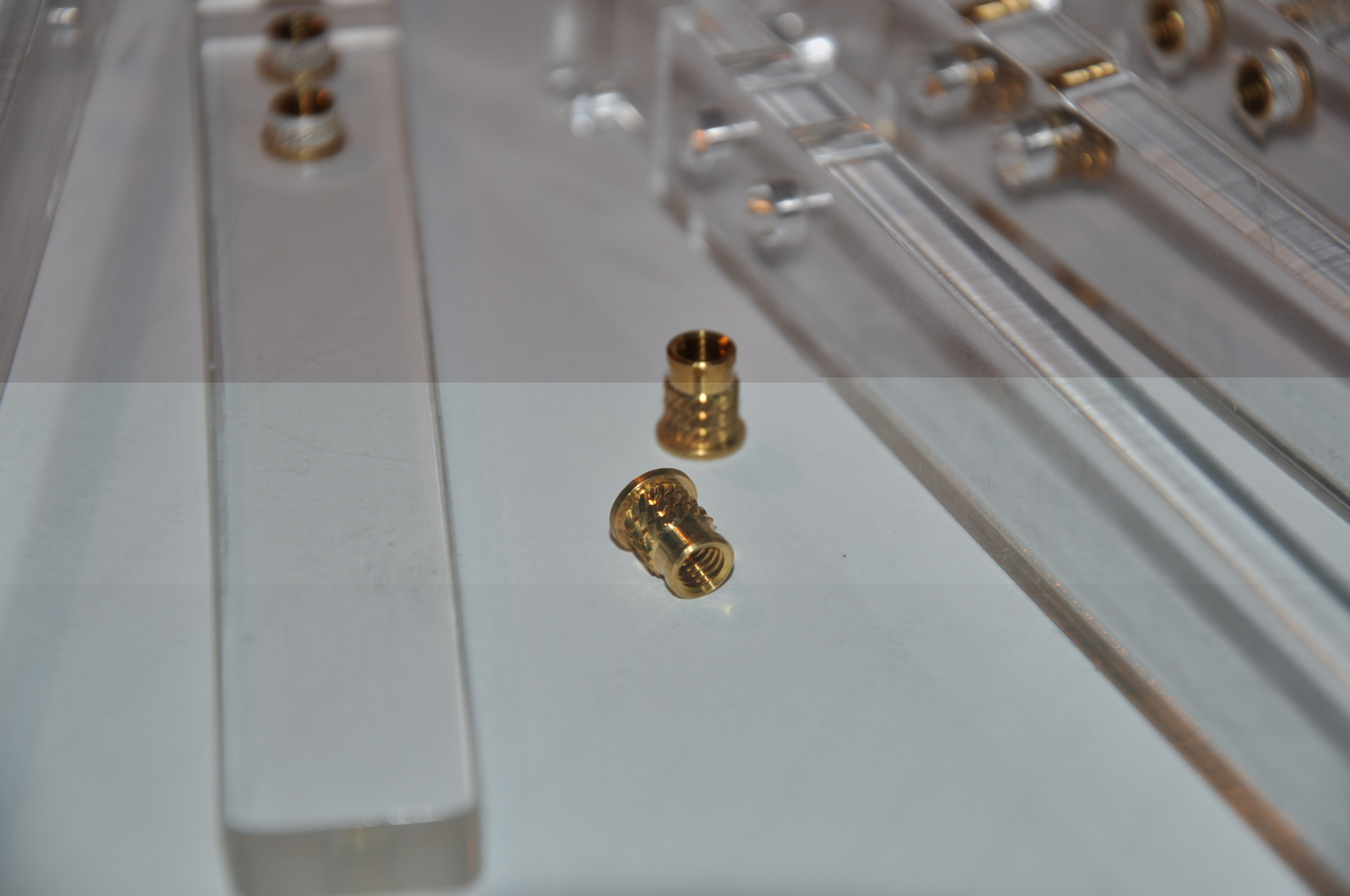 Schritt 1 D6,2 bohren (wurde hier in einem mit der Außenkannte gelasert) Schritt 2 Gewindehülse aufstecken. Schritt 3 Gewindehülse sanft in das Plexiglas (PMMA) einmassieren :-)