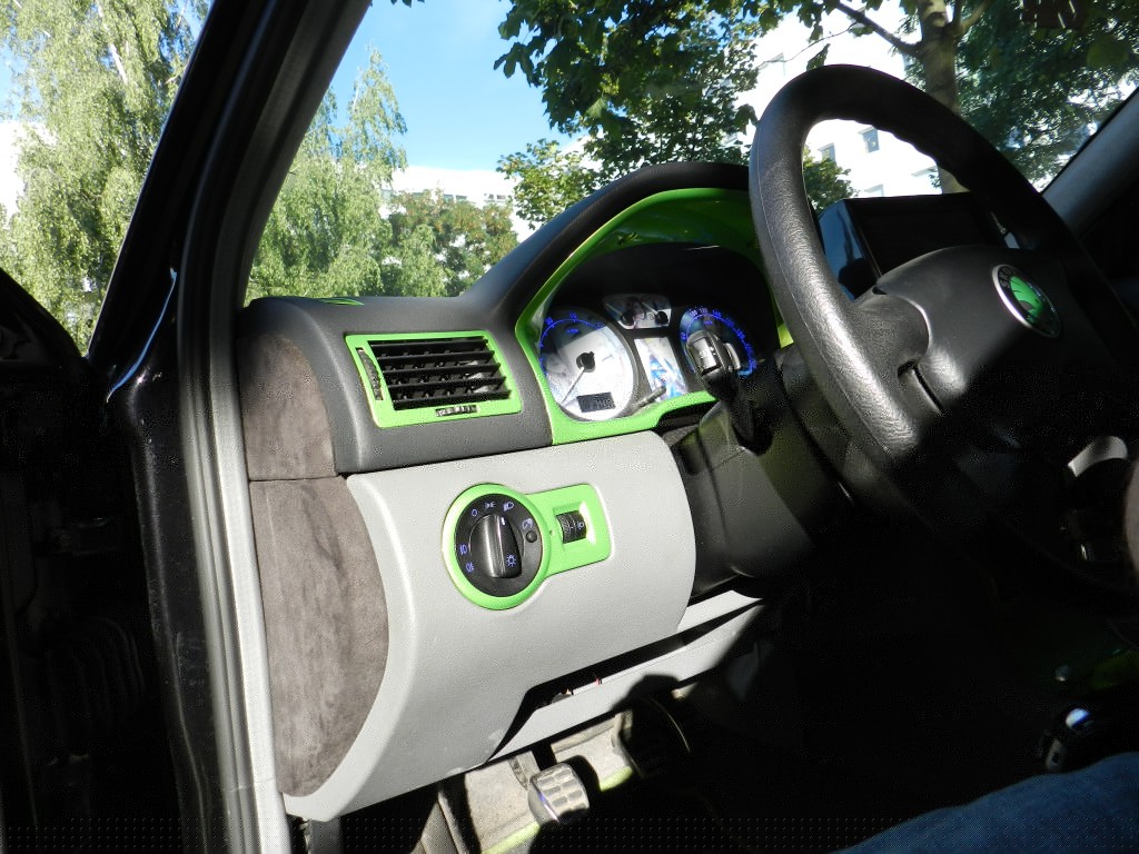 Nachdem nun auch blaue superhelle SMD-LEDs bezahlbar sind habe ich mich entschlossen meine Innenbeleuchtung das nun vierte Mal um zubauen. Des weiteren ist nun auch etwas grün im Innenraum zu finden. Ist aber erst der Anfang. Die komplette Innenausstattung wird auch eine Kombi aus Grün, Grau und Schwarz werden. Der Car-PC hat nun auch einen grünen Skin bekommen und ein paar Teile habe ich probehalber schon Mal zum Test mit Kunstleder bezogen. Aber seht selbst.