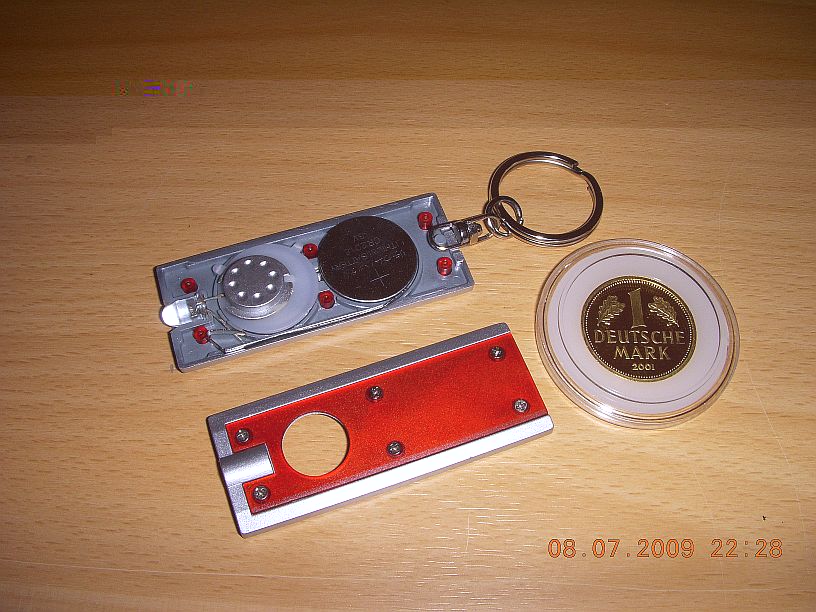 Hier noch das Innenleben der kleinen Schlüsselanhänger-Taschenlampe