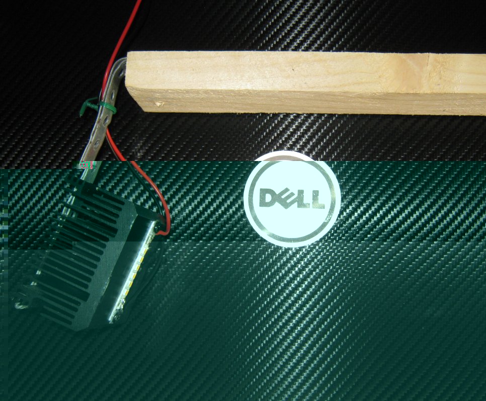 warmweiß, Nichia PowerBar (am besten alle 12 LEDs in 2 oder 3 Reihen), Alublech als Kühlkörper und Strom 150 bis 200 mA.