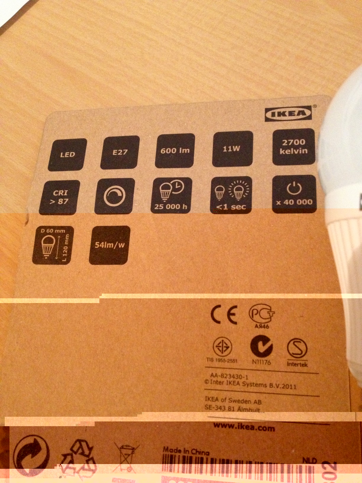 Ich wollte eigentlich gerade eine mit einem leichten rot/orange-Stich. Aber das Leuchtmittel von Ikea ist wirklich mal eine Alternative zu einer echten 40/60W Glühlampe. Ich bin begeistert!