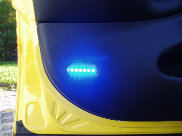 Habe damit angefangen, dass ich an die Unterseiten der Innenverkleidung jeweils 6 LED´s eingearbeitet habe, um den Boden zu beleuchten, beim Türöffnen...diese hab ich mit nem Drehmel abgeschliffen um eine bessere Flächenausleuchtung zu bekommen...