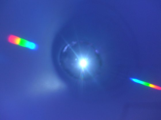 ihr könnt die lichtbrechung auch mit einer CD erreichen. Nehmt einfach eine CD und bestrahlt sie mit der LED. Haltet ihr die CD richtig (ein bisschen schief) dann müsstet ihr an der wand das spektrm sehen. Bei mir hats auf jedenfall funktioniert! :D