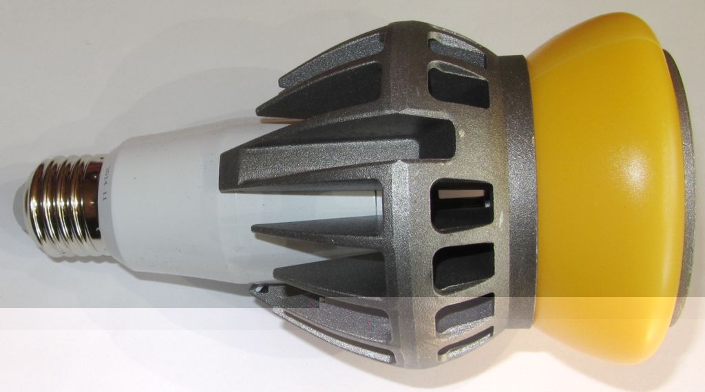 Einen interessanten Satz habe ich noch bei den Hinweisen auf der Verpackung gefunden: Punkt 10 lässt darauf schließen, dass das Leuchtmittel einen Temperatursensor enthält, der den LED-Strom bei zu hoher Temperatur des Kühlkörpers herunter regelt. Dies ist für ein Retrofit-Leuchtmittel eher ungewöhnlich und spricht für eine hohe Lebensdauer.