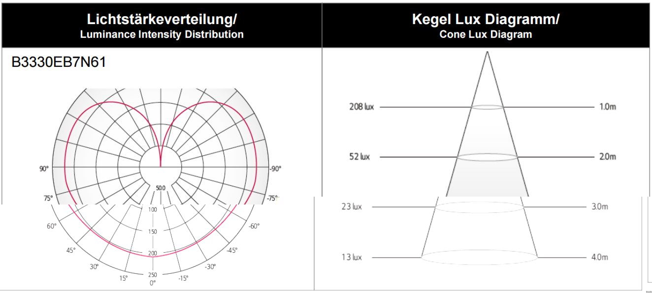 Im Dauerbetrieb erreicht der innere Kühlkörper eine Temperatur von 75°C (alle Werte bezogen auf 25°C Umgebungstemperatur), der äußere Kühlkörper 68°C und der Sockel 58°C. Dabei konnte ich keinerlei Unterschiede zwischen vertikaler und horizontaler Einbaulage feststellen.