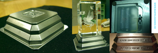 Hab sowas mal auf einer Messe geschehen, man konnte sich 3D ablichten lassen und anschließen ins Glas einlasern. Möchte nicht wissen, was so ein Gerät kostet.