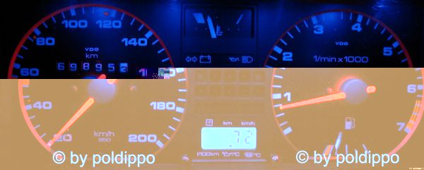 Der gesammte Tacho von 4 SMD-LED´s mit einem Abstrahlwinkel von 120°, somit habe ich eine bessere Ausleuchtung.