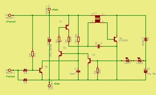 Hier der Schaltplan dazu: Nachtrag: Diese Schaltung funktioniert, aber die Helligkeit der LED ist nur Durchschnitt !!!