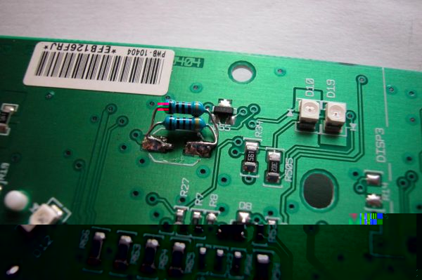 Hier kann man erkennen, dass die grünen SMDs hinter dem Dislpay schon gegen weiße getauscht wurden.