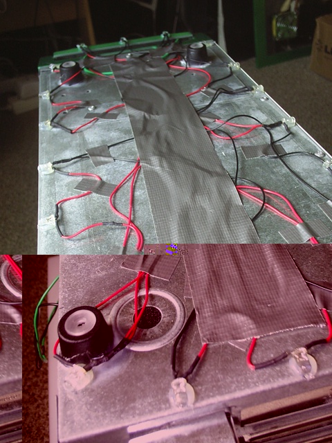 So nach einer weile neu verlöten sowie verkabeln und anbringen der Led's sah das ganze wie folgt aus (Ich habe nur mal für die Bilder eine Weiße Schaumstoffplatte als Biden verwendet):