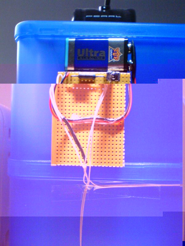 Ach ja die Stromversorgung erfolgt über einen 9V-Block. Die LED´s sind 3fach in Regeschaltet und dan Paralell.