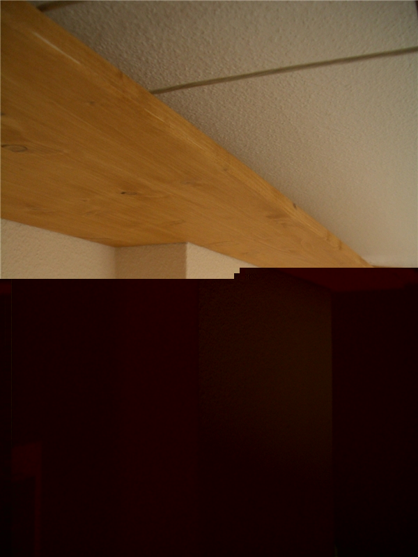 Weil bei mir durchs Zimmer der Kaminabzug aus dem Keller hoch zum Dach läuft, musste ich aus dem einen Brett einen Ausschnitt sägen, wodurch das dieses Brett von mir breiter gewählt wurde, damit an dieser Stelle das Brett nicht zu schmal wird