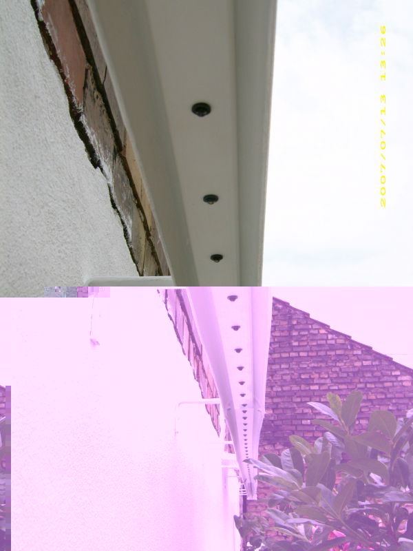 Da die erste Mauer, wie oben zu sehen, gut gelungen ist, habe ich mich entschieden über der Abdeckung auch noch LEDs anzubringen.(Länge noch mal 6,6m) Problem war hier der Nässeschutz. Dachrinne war mir zu groß und zu Teuer. Also kurzerhand 70er Abflußrohre gekauft und die in der Länge geteilt. Zugeschnitten, Löcher