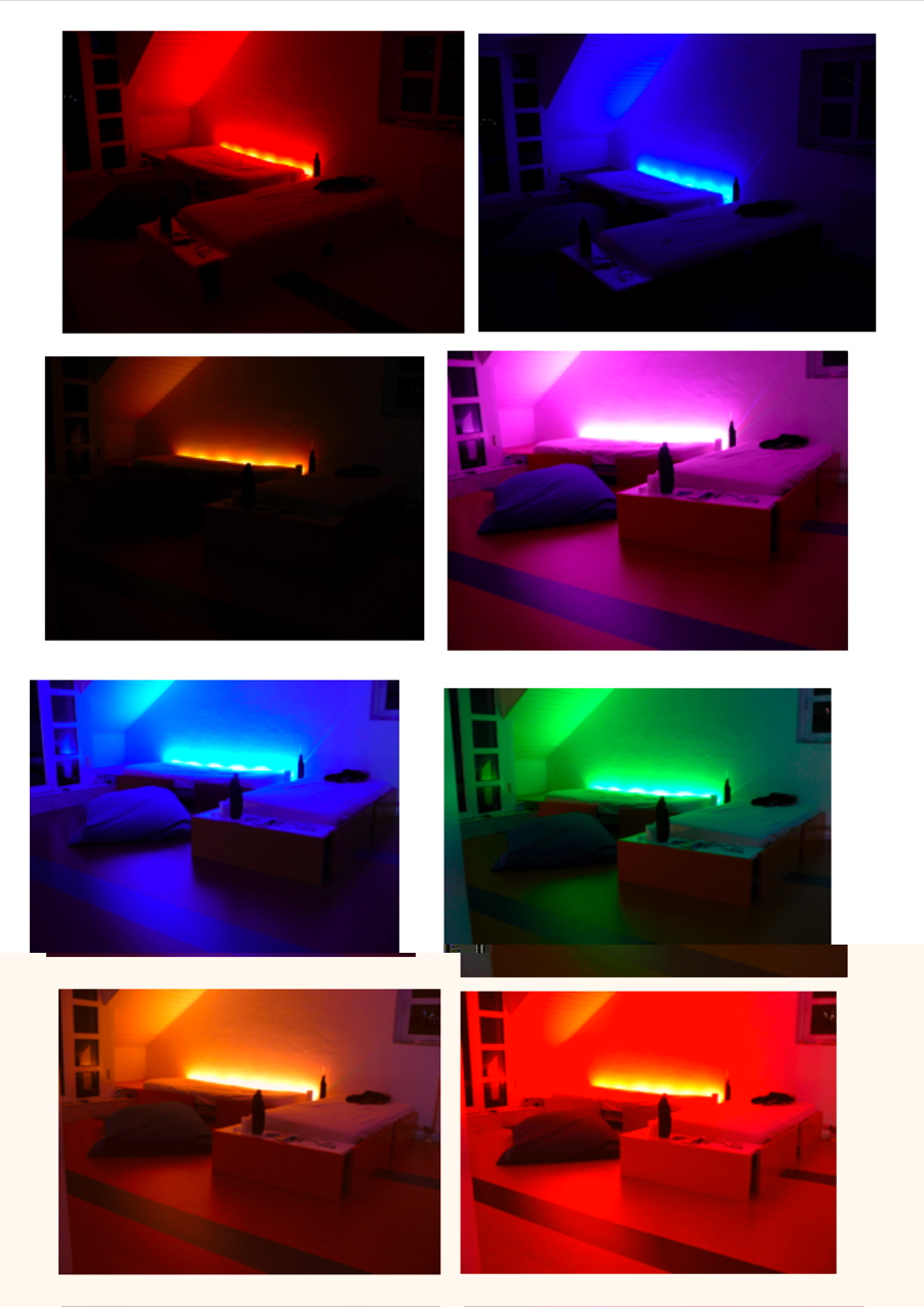 Schaut wirklich geil aus, der raum wird sehr ordentlich beleuchtet. Meines erachtens, leuchtet rot am hellsten ;-). Mach weiter so !!!