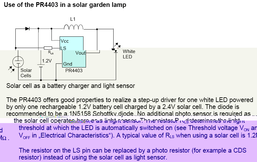 Diese Schaltung hat bereits 2007 sehr gute Dienste erwiesen. Die LED leuchtet die ganze Nacht, selbst wenn mal ein paar Tage die Sonne nicht scheint. Mal sehen wie sich die neuen LEDs von Nichia machen... (wenn sie denn mal lieferbar sind....)