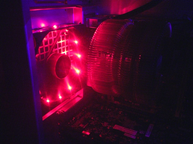 Hier der Rote lüfter im Hintergrund mit 12 roten Led's