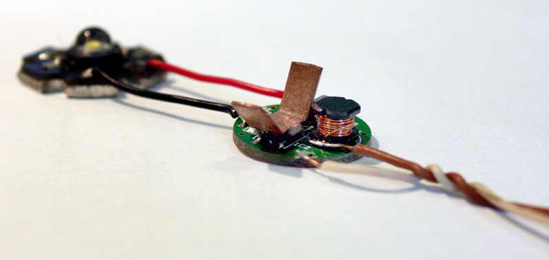 Ich will in den nächsten Tagen mal versuchen, an diese Beinchen etwas dickeren Kupferdraht ohne Kurzschlüsse zu produzieren anzulöten, der seinerseits an ein teilweise wassergefülltes (damit es nicht explodiert), verschlossenes Kupferröhrchen als Kühlkörper angelötet ist. Ich glaube, daß Wasserkühlung das Problem in den Griff bekommen kann. Meine bereits vor längerer Zeit vorgestellten anderen Kopfleuchten hatten auch ein, allerdings massive, Wasserkühlung für die jeweils drei Stück verwendeten P4 und funktionieren bis heute ohne jegliche Beanstandung.