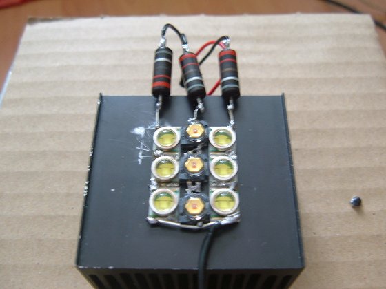 Wiegesagt kommen 3 Luxeon Rot mit je 75 Lumen und 6 Cree XR-E mit je 140lm bei 700ma zum Einsatz.
