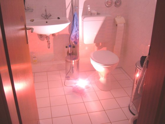 Mit dem Auge kommt das Licht nur ganz leicht rosagefärbt vor,kaum zu sehen.
