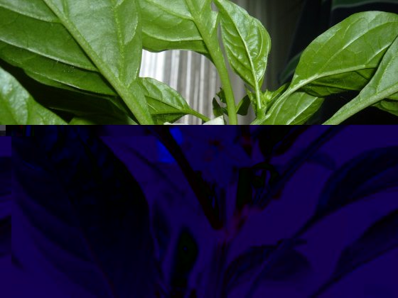 Weiß+Royalblau:Besseres Wachstum aber das lag wohl daran dass insgesamt mehr Licht vorhanden war da kaltweiße Leds schon sehr viel Blau emittieren.