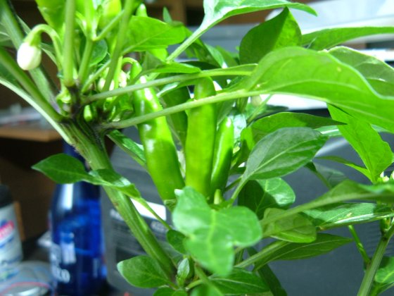 Die unterste Chilichote ist ca 10 Tage alt und stand davon nur 2 Tage in der Sonne,den Rest unter der Lampe.