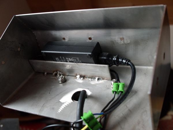 Das Netzteil im Gehäuse. Den Steg benötige ich unbedingt, da das ganze Gehäuse ja in einem Winkel von 30° steht.