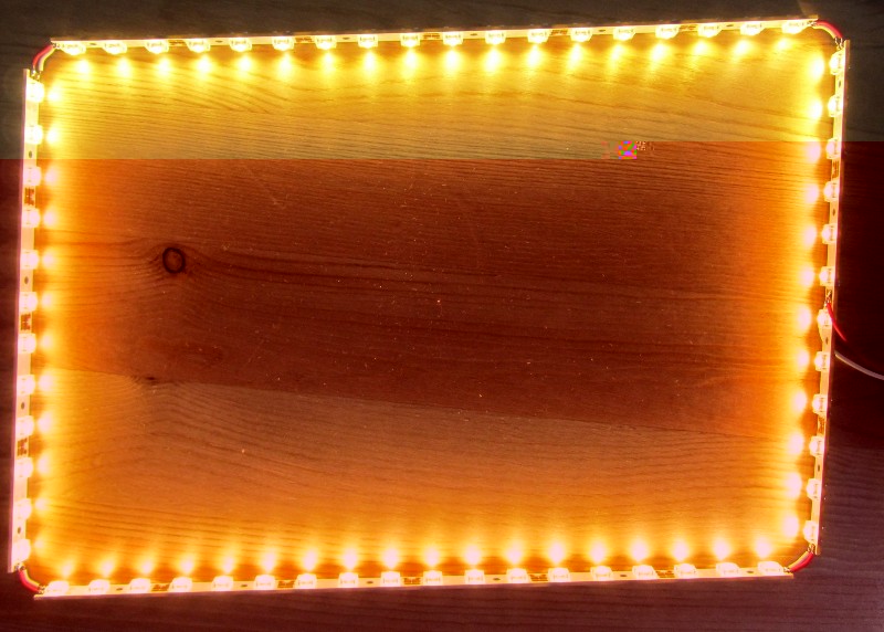Für die RGB-Geschichte wären natürlich die flexiblen Leisten besser gewesen, da diese richtige RGB-LEDs (alle drei Farben in einem LED-Gehäuse) drauf haben. Das gibt ein wesentlich homogenere Farbmischung auch schon in geringer Entfernung.