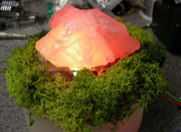 Da mich leuchtende Objekte so fazinieren hab ich mich entschlossen dieses kleine Projekt zu machen. Dabei handelt es sich um ein kleines Dekoobjekt, um genau zu sein habe ich mit 3 Leuchtdioden (Rot, Grün, Blau) einen Rosenquarz Stein beleuchtet. Ich denke auch der Preiß hält sich dafür in grenzen und das ganze war ein Sonntagmittag Bastelprojekt.