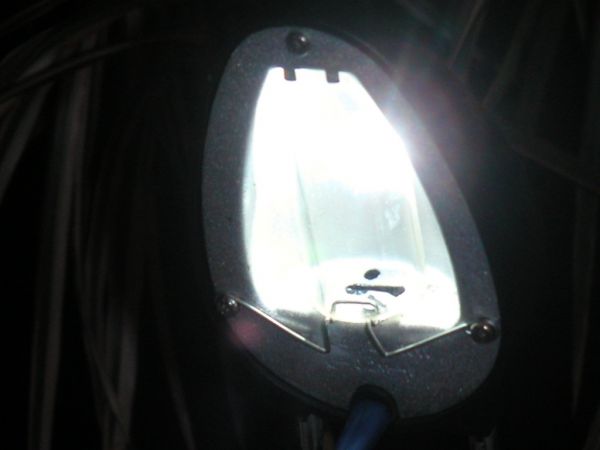 Also das ist die Elektronik, habe ich testweise mal so aufgebaut um Festzustellen das der Kühlkörper des Spannungsregler viel zu klein ist (Wenns zu rauchen anfängt ist schlecht). Also hab ich den Spannungsregler von der Platine runtergelötet und kurzerhand an den Alu Reflektor der Lampe gelötet der zur genüge die Wärme abführen kann. In den Reflektor der Lampe habe ich ein Loch gebohrt wo die Linse der K2 genau durchpast. Das man auch mal sieht wie die Lampe ausschaut. Die Elektronik hate gerade noch so in das Gehäuse gepasst. Das ist das einzigste was man dann von der K2 sieht. Und hier noch das ganze im Betrieb (schaut dunkel aus, ist es aber nicht). Ist dann in etwa so hell wie die 20W Halogenlampe.