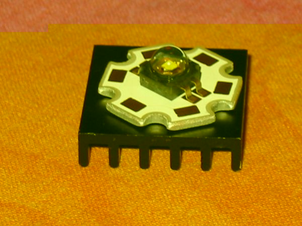 Kühlkörper wie oben auf dem Bild nur ohne Platine, mit Wärmeleitkleber LED und Kühlkörper verbunden.