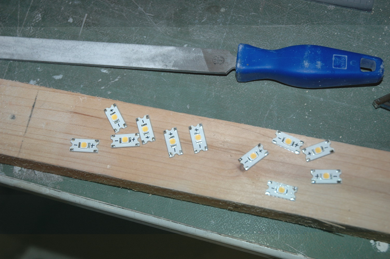 So, jetzt können wir mit der richtigen Montage der Leds beginnen. So sieht das ganze schon viel besser aus. Für mehr reicht mir heut leider nicht ganz die Zeit dazu aus.