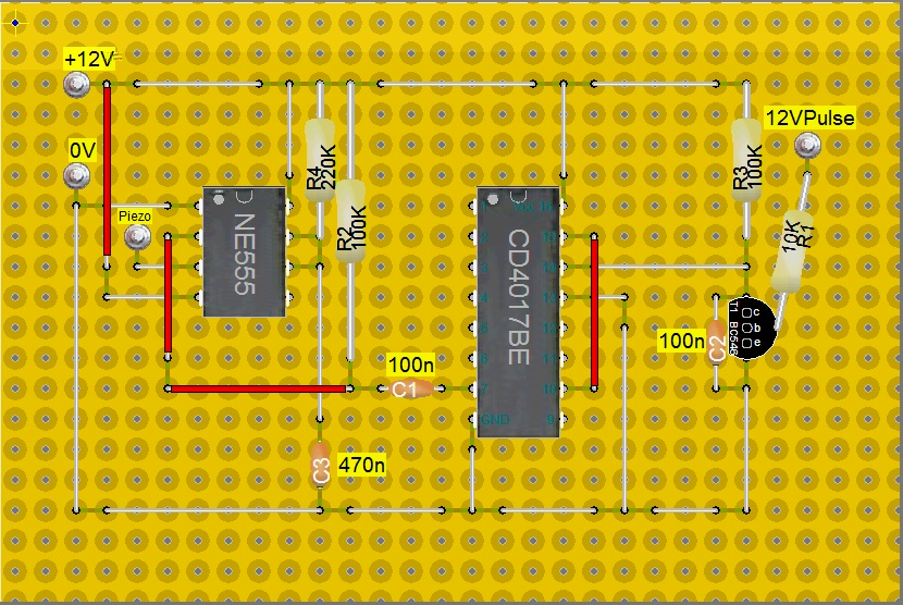 Wenn Du mir sagst, welche Bauteile Du jetzt verwendet hast (isb. bei den Kondensatoren, weil die gibt es mit sehr unterschiedlichen Rastermaßen) und was alles auf die Platine soll (Piezo) kann ich Dir auch einen Lochmasterplan erstellen.