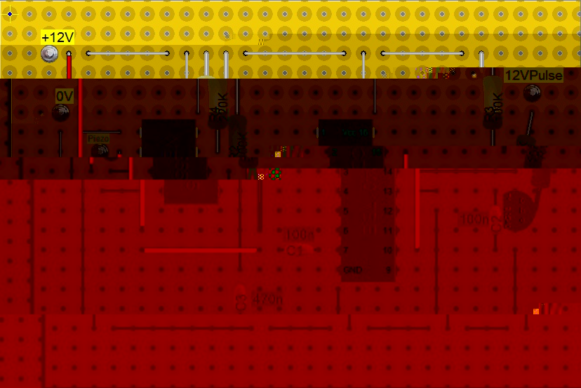 Betriebsspannung (VDD) hab ich jetzt mit 12V angenommen. Es würde aber auch mit 9V oder 5V gehen (hängt natürlich auch vom Piezo ab).