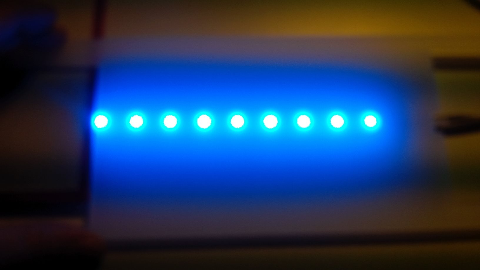 Vielleicht ist das ja als Anhaltspunkt ganz interessant. Aber es gilt nur für diese Kombination von LED-Leiste und Plexiglas. Die 11 und 28 mm haben auch keinen tieferen Sinn, das waren einfach Abstände, die ich mit hier herumliegendem Material herstellen konnte.