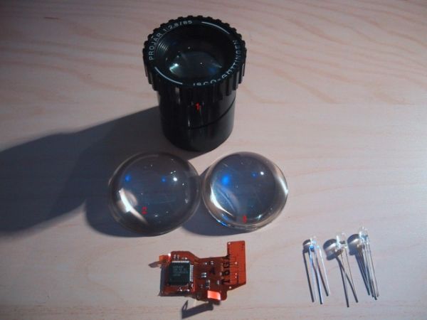 meine erster versuch wa mit Linse aus einem Teleskop aber die waren viel zu schwach