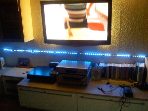 Also die Leisten sind sechs Stück der blauen SMD-LED Leisten von Lumitronix. Kurioserweise leuchten mitten in de Leiseten so drei LED´s nicht richtig.