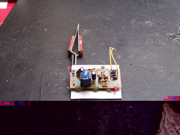 Die Bilder zeigen das ausgeschlachtete Handynetzteil auf einer Aluplatte und ein leider schlecht gewordenenes Bild vom Hausschild völlig zugewachsen.