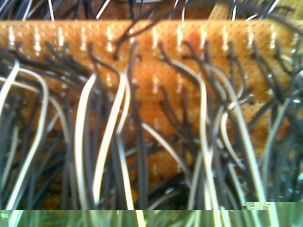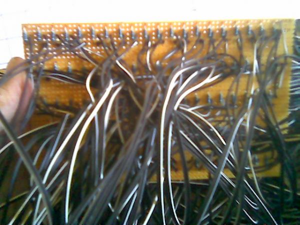 Mal abgesehen davon, das das Bild total unscharf ist und man dadurch so gut wie garnichts erkennen kann würde ich mal sagen, das du dir viel zu viel Aufwand gemacht hast. Wie ich sehe hast du die LEDs nicht direkt auf die Platine gelötet, sondern nur die Widerstände dort befestigt. Dann hättest du auch keine Platine gebraucht.