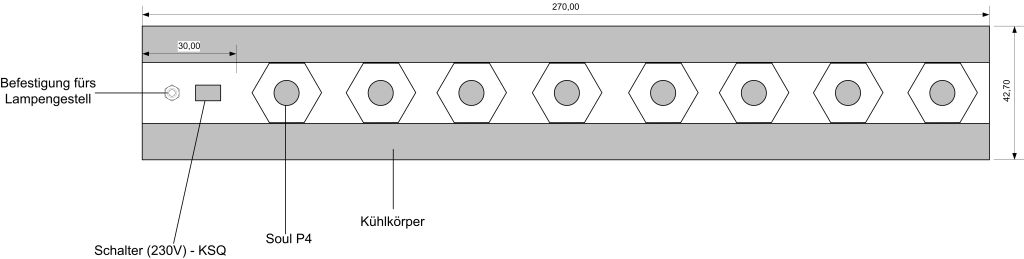 Die Stromversorgung soll über die 230V KSQ mit 700mA erfolgen. Diese wird über einen Schalter auch 230V am Kühlkörper(wird geerdet) geschaltet.