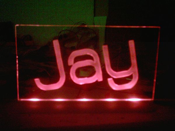 In unserer früheren Firma steht ein Schildle aus Plexiglas in dem das Firmenlogo eingraviert ist. Die Plexiglasscheibe ist von unten mit blauen LEDs beleuchtet und irgendwie leuchtet nur das Logo. Das sieht wirklich irre gut aus.