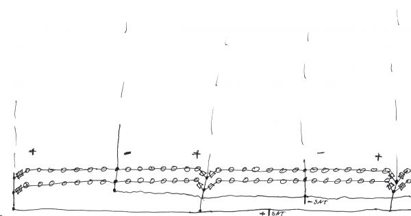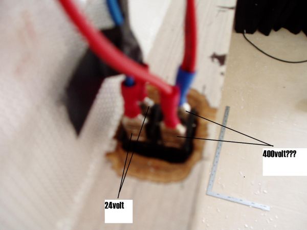 Bild eins die ansicht zur sicherheit habe ich die wand mit urtehan eingesprüht Bild zwei das SNT mit gemessenen 23,98volt ,unter dem kasten in fußboden nähe Bild drei an der zuleitung vom SNT kommen 23,98volt an also zu leitung inordnung rechts + - die zur matrix gehen mit gemmessenen 400vollt und m...