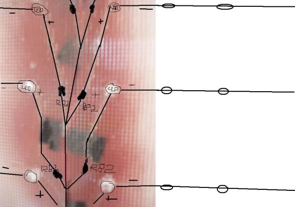 Ja alle leuchten jetzt in einer reihe habe ich eins vergessen zu lötten eine andere habe ich alle sieben +- vertauscht bei der nächsten wahr eine lötstelle zu unsauber gearbeitet und mann kann garnicht im raum sitzen das geht voll auf die augen es muss was davor aber die karte sieht scheisse aus weg...