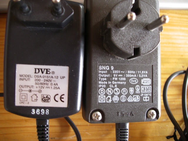 hab im Keller noch 2 Netzteile gefunden, bei denen ich nicht weiß, ob sie stabilisiert sind oder nicht. Kann man diese vielleicht für eine LED Versorgung verwenden ? Das linke Teil(1) liefert 12 V 1,25A , das rechte(2) 9V 0,35A.