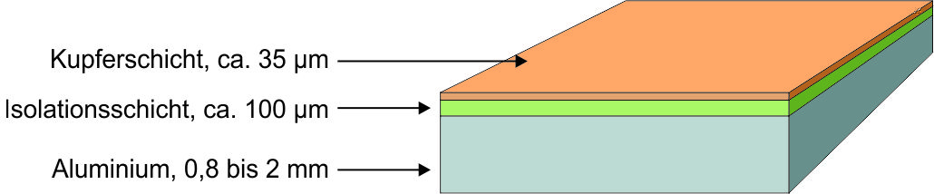 Kupfer und Aluminium sind sehr gute Wärmeleiter. Ausschlaggebend für den Wärmewiderstand einer Alukernplatine ist die Isolationsschicht. Diese hat zwar eine vielfach bessere Wärmeleitfähigkeit als Luft, allerdings auch eine vielfach schlechtere als Aluminium. Der Wärmewiderstand errechnet sich im Prinzip aus dem Produkt von Wärmeleitfähigkeit, Schichtdicke und Fläche.