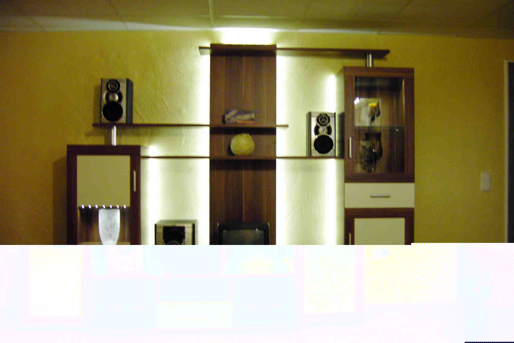 Ein Wohnzimmerschrank(nicht sehr Gross),ca.6m Kabelkanal 15x15mm,116 Suflus Warmweiss,