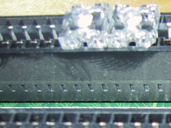 Als nächstes müssen die oberen Kontakte eines ISA-Steckplatzes zusammen verbunden werden. Das gleiche auch mit den unteren Kontakte. Damit man die oberen und unteren Reihe durchgehend unter Strom legen kann: