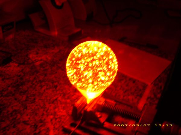 Bei der größeren Platte habe ich vom Rand zur mittleren Vertiefung ein 3mm Loch gebohrt für das Netzkabel und von unten 3 Löcher für die Schrauben, die die Platten miteinander verbinden sollen. Die 3mm Löcher der anderen Platte habe ich mit dem 5mm Bohrer aufgebohrt für die LEDs. Die Ränder der Holzstücke habe ich mit Schleifpapier entgratet und glatt geschliffen, die Flächen mit feiner Stahlwolle geglättet. Die LEDs wurden geköpft (zur besseren Lichtstreuung), in die Löcher gesteckt und mit den Widerständen und Kabeln verlötet. Die Kabel zusammengeführt und mit dem Netzkabel verlötet. Ein Tropfen Heißkleber fixiert die Kabel in den Kanälen. Ein Kabelbinder dient als Zugentlastung. Die Platten zusammengeschraubt. Die Filzpunkte habe ich auf die Schraublöcher geklebt. (Kein Bild gemacht, aber das kann man sich ja auch so vorstellen.) Fertig