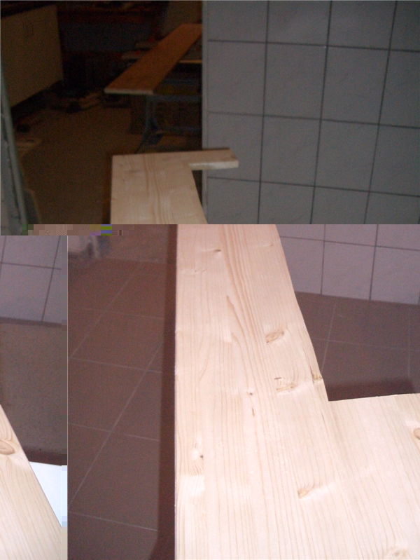 Weil bei mir durchs Zimmer der Kaminabzug aus dem Keller hoch zum Dach läuft, musste ich aus dem einen Brett einen Ausschnitt sägen, wodurch das dieses Brett von mir breiter gewählt wurde, damit an dieser Stelle das Brett nicht zu schmal wird