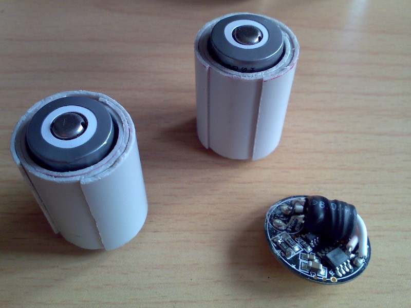 Da der Akkudurchmesser nicht ins Rohr passt, musste noch über KuPa-Rohre ein Ausgleich hergestellt werden. Weiterhin sieht man auf diese Bild noch die 2,8A KSQ, welche in der Praxis aber nur etwa 2,2-2,3A liefert. Das das durchaus ein Vorteil ist, wird später noch klar werden.